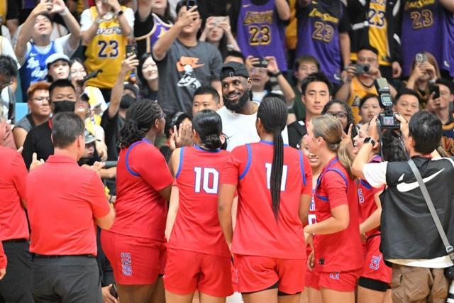 詹姆斯与崔永熙击掌 旁边还有李梦和赵睿