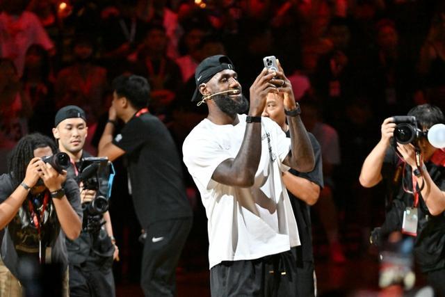 詹姆斯与获奖的球员们合影詹姆斯与小球员击掌詹姆斯与崔永熙击掌 旁边还有李梦和赵睿崔永熙与赵睿、崔永熙、王博、李梦等人合影詹姆斯被小球员们簇拥起来詹姆斯拿着手机拍拍拍...